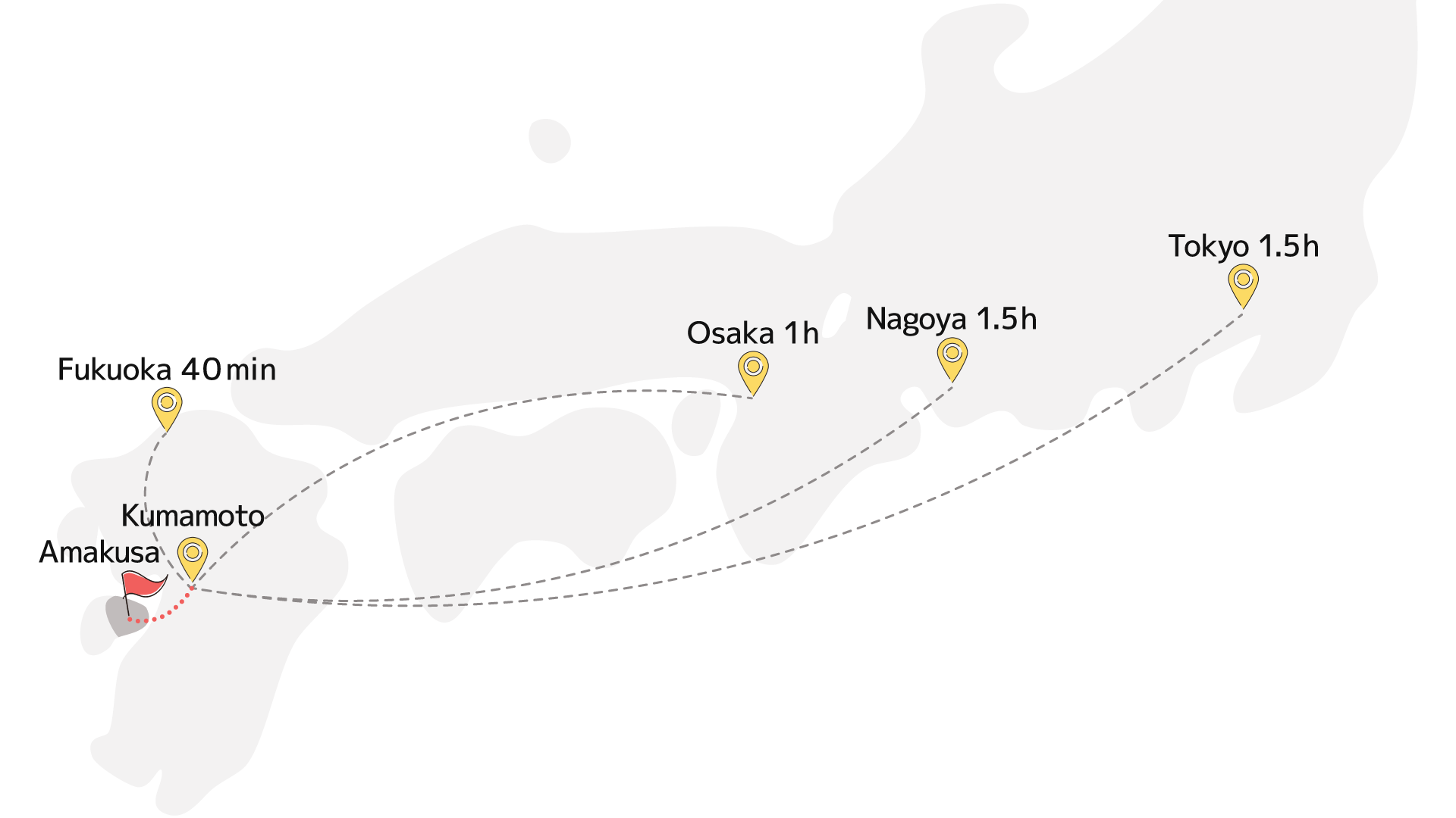 From Fukuoka: about 2.5 hours.